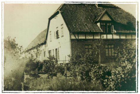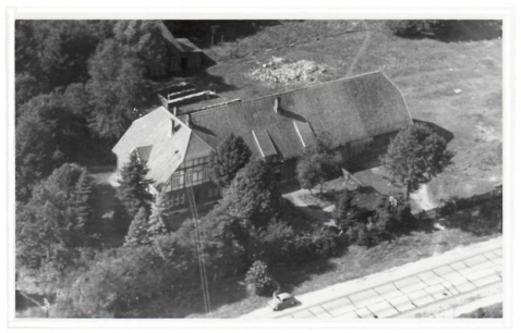 Die nachfolgenden Aufnahmen sind einige der wenigen Exemplare, die noch den Gertrudenhof zeigen. Das Bild links zeigt den Hof um 1930, das rechte Bild ist eine Luftaufnahme um 1950.