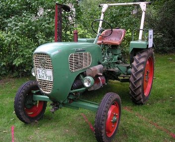 ![]() | Deutz F1L 514/50 Baujahr: 14.09.1950 damaliger Preis: 4900,- DM Pferdestärken: 15 Zylinder: 2 / 4-Takt Diesel Umdrehungen: 1650/min Hubraum: 1330 ccm zul. Gewicht: 1900 kg Geschwindigkeit: 15 km/h Auf Basis des Deutz F1M 414 entstand der erste luftgekühlte Deutz-Schlepper, der 15er Deutz F1L 514/50. Von diesem Typ wurden bis 1957 insgesamt 26911 Stück gebaut. |