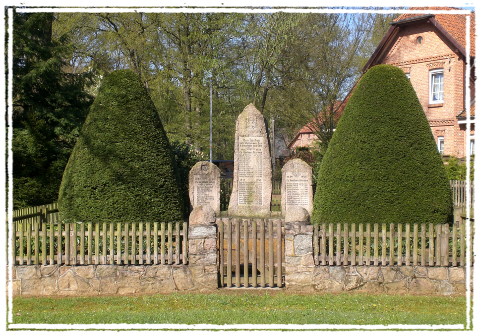 Das Gefallenendenkmal, auch Kriegerdenkmal genannt, befindet sich in der Ortsmitte neben dem alten Spritzenhaus. Es ist als kleine Anlage umzäunt und hat drei bearbeitete Findlinge.