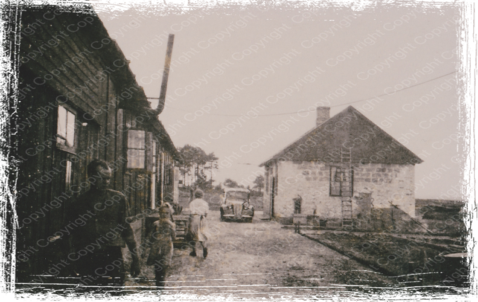 Die Bilder zeigen die Baracke (links) und die Torffabrik auf dem Tannensieksberg. Aufnahmejahr ca. 1948/1949.